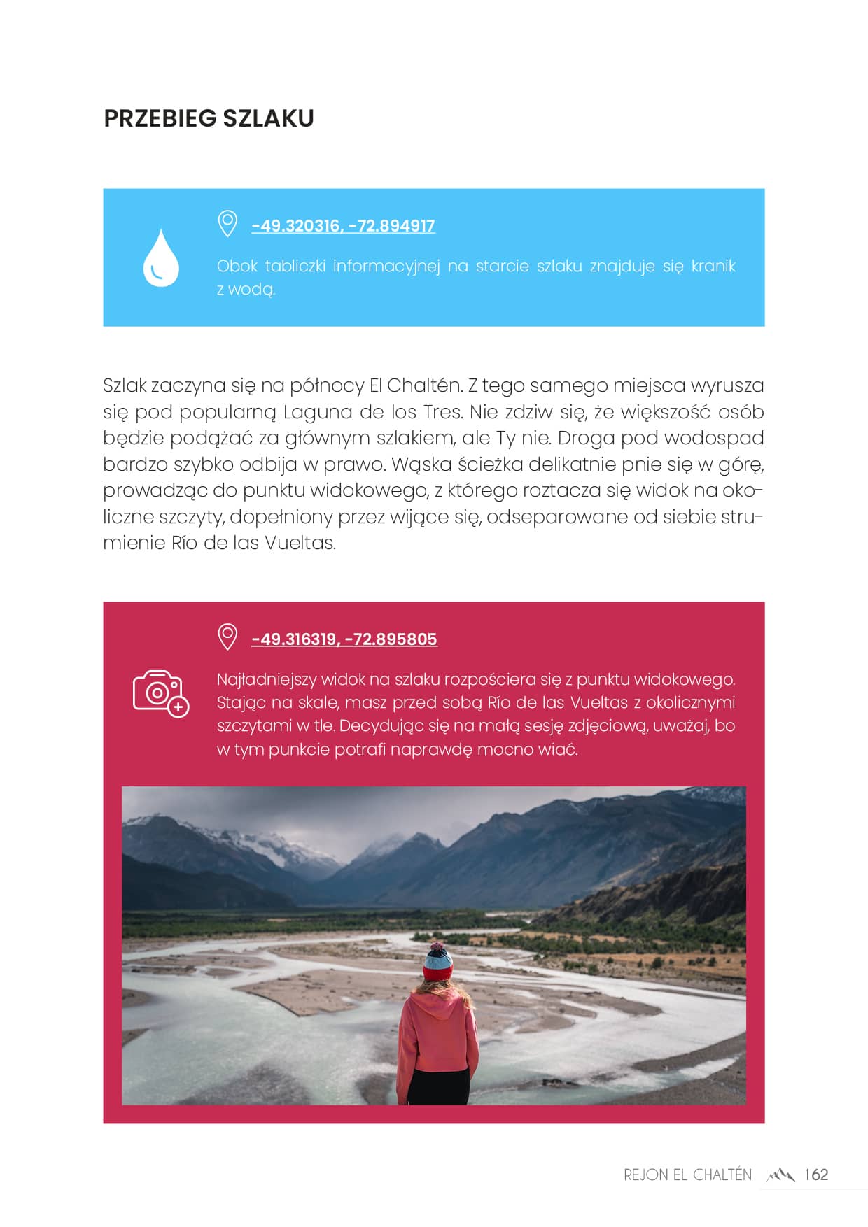 Ponadto szczegółowo opisaliśmy aż 11 szlaków trekkingowych w okolicach El Chaltén. Oznaczyliśmy na nich m.in. wszystkie warte uwagi fotospoty oraz miejsca do uzupełnienia wody.